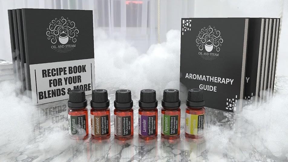 6 LUXURIOUS OILS! LAVENDER, EUCALYPTUS, SANDALWOOD, PEPPERMINT, FRANKINCENSE, AND JASMINE. MORE INFO ON OUR OILS CAN BE FOUND DOWN BELOW THE REVIEWS.
